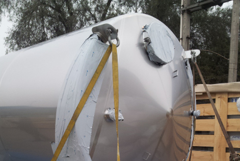 Supply, manufacture and transport of osmosis tanks for new juices line in 304L material. The tank includes the following accessories: circular gateway, upper bowl type valve, lower and upper level valve, sampling valve, partial and total drain with butterfly valve.